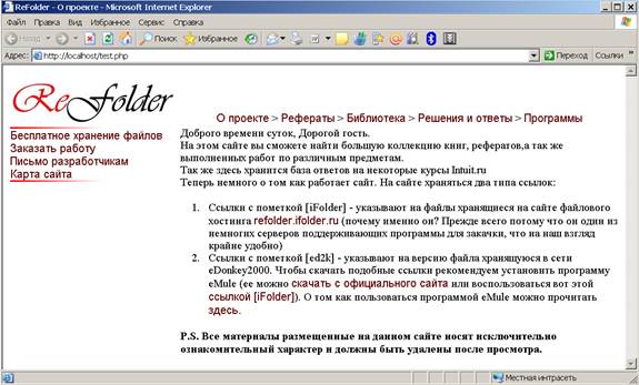 <LI>Ссылки с пометкой [iFolder] - указывают на файлы хранящиеся на сайте файлового хостинга <A HREF="http://refolder.ifolder.ru/">refolder.ifolder.ru</A>