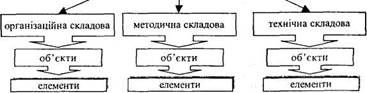 Формування організаційної складової передує формуванню методичної та технічної складових і включає об'єкти, які повинні забезпечити організаційну побудову облікового підрозділу, визначення його місця в управлінській і виробничій структурі підприємства, а також його взаємодії з іншими підрозділами підприємства. Організаційна складова також передбачає створення системи внутрішньогосподарського контролю для забезпечення збереження майна, дотримання законності та доцільності господарських операцій, а також достовірності бухгалтерської інформації.