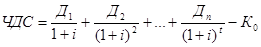 где К0 – сумма первоначальных инвестиций в нулевом периоде; Дn- будущая стоимость, полученная от реализации проекта инвестиций в годы от 1 до n; i – ставка процента на капитал (ставка дисконтирования); t – период, число лет.