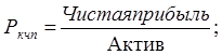 При этом актив – величина капитала – усредняется за период; коэффициент рентабельности капитала по чистой прибыли: