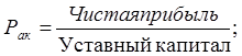 Похожий показатель – рентабельность акционерного капитала - показывает, сколько чистой прибыли предполагается на рубль акционерных средств (или средств пайщиков):