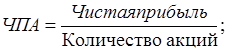 Можно также рассчитать коэффициент чистой прибыли на одну акцию: