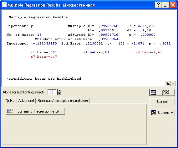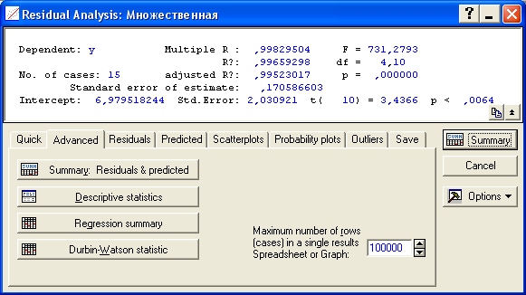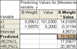 В случае, когда модель адекватна результатам наблюдения для выполнения прогноза в окне Multyple Regression Results