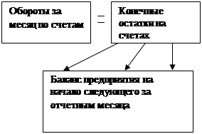 Такое равенство имеет следующее обоснование: равенство итогов сальдо по дебету и кредиту счетов на начало и конец месяца подтверждается строением бухгалтерского баланса, т.к. итог дебетовых сальдо по счетам показывает сумму имущества организации, а итог кредитовых сальдо – сумму источников образования этого имущества.