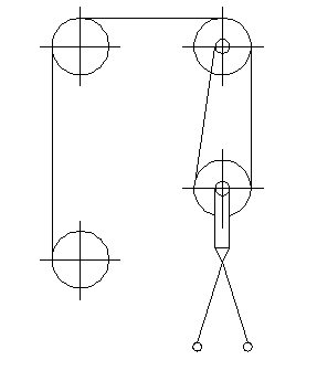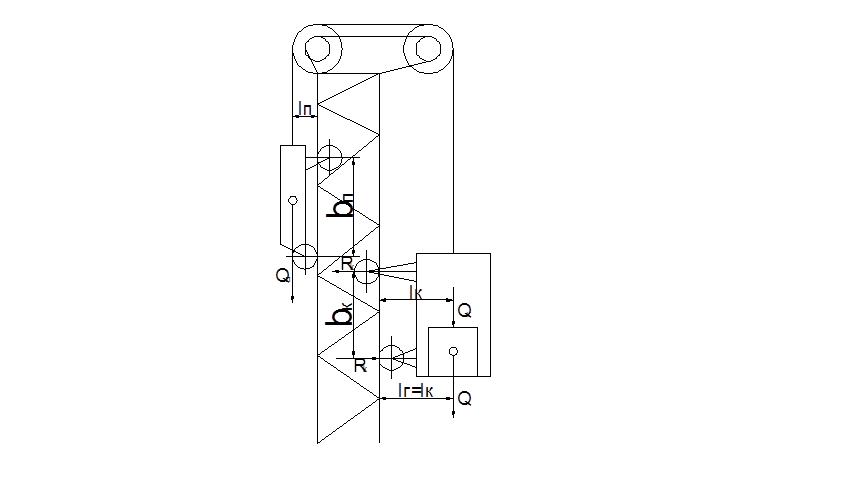 рис.1. Кинематическая схема лебедкиНа поверхности канатоведущего шкива 1 (рис.2) есть четыре клиновидных ручья, в которых располагается четыре грызовых каната, огибающие шкив. За счет натяжения, создаваемого весом противовеса, канатов, кабины, канаты прижимаются к поверхностям ручьев. При этом возникает сила трения, которая предотвращает самопроизвольное проскальзывание канатов относительно шкива при его вращении и обеспечивает передачу канату тягового усилия, необходимого для перемещения кабины. Чтобы канат на канатоведущих шкивах не проскальзывал, масса противовеса должна быть в 1,5 раза больше массы кабины с полезной нагрузкой