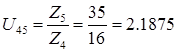 . Цьому законові підкоряється і швидкість точки С контакту коліс 4 і 5. Проведемо з точки С горизонтальну пряму до пересічення з лінією О1