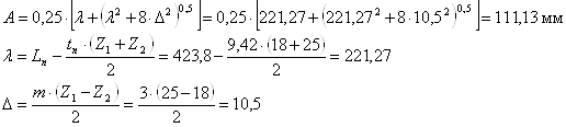 Уточненное межосевое расстояние: