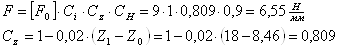 - для условий черновой обработки- (1,05-1,5); x=0,9; y=0,75; n=0 определяются по справочнику.