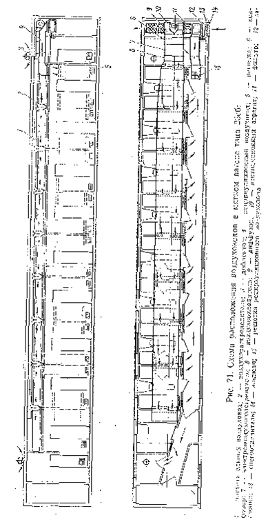 На рис. 69 показана схема расположения воздуховодов в жестком купированном вагоне постройки заводов ГДР.