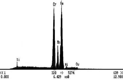 7. При обробці шипів хрестовин струмом в інтервалі значень 120 - 150 А падіння концентрації всіх елементів було істотним: для Ni складало 29,47%, а Cr - 26,53%. Це призводить до неоднорідності структури та властивостей покриття й сприяє нерівномірному зношуванню відновленої поверхні деталі.