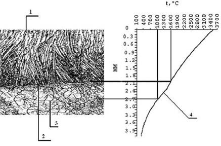 Отримано залежність впливу температурного режиму обробки на зміну структури покриття та перехідної зони. Показано, що при обробці параметрами I = 260 А и V = 3,8 об/хв призводить до перегріву та формуванню відманштетової структури у перехідній зоні.