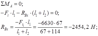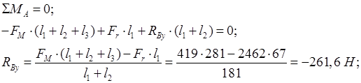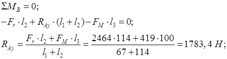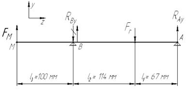 Приведём расчётную схему для определения реакций опор валов редуктора:
