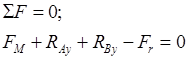 Реакции в вертикальной плоскости YOZ: