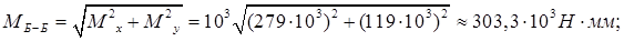Суммарный изгибающий момент в сечении Б-Б