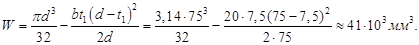 Сечение A-A является наиболее опасным. Диаметр вала в этом сечении 75 мм. Концентрация напряжений обусловлена наличием шпоночной канавки: