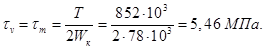 Коэффициент запаса прочности по касательным напряжениям: