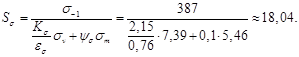 Расчётный коэффициент запаса прочности S в опасном сечении и сравниваем его с допускаемым значением (1,32):