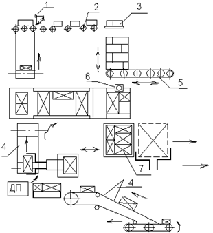 Особливість цієї схеми заключається в тому, що вироби з конвеєра не знімаються.