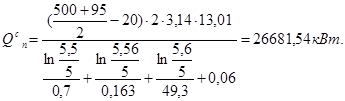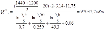 Температура газов на входе в зону составляет 1400°С, на выходе 1250°С, в среднем °С. Тогда