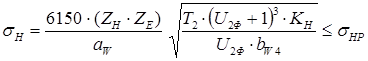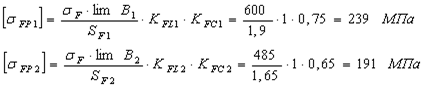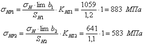 При расчете конических колес с круговыми зубьями sHP выбирается как наименьшее из двух, получаемых по формулам [3, с. 15]: