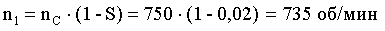 n2= n1 / U1 = 735/3,55 = 207 об/мин