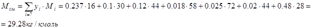 где - молярная доля i-го компонента; - теплопроводность i-го компонента; - молярная масса i-го компонента, кг/кмоль.
