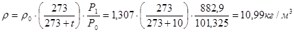 Плотность дымовых газов при средней температуре определяется по формуле: