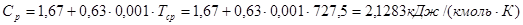 , где - массовая доля i-го компонента; - удельная теплоемкость i-го компонента, .