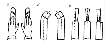 отогнутые, в — изогнутые, г — оттянутые по отношению к оси державки резца или быть смещено вправо или влево.