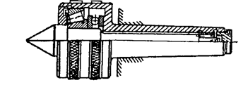 Универсальность металлорежущего станка расширяется применением принадлежностей и приспособлений. На токарном станке основными из них являются: патроны, центры (рис.6), люнеты. Применяются и вспомогательные приспособления: сверлильный патрон, переходные втулки, хомутики. Из патронов наибольшее распространение получил самоцентрирующийся трех кулачковый патрон (рис.7). Его конструкция обеспечивает одновременное перемещение трех кулачков в радиальном направлении, благодаря чему заготовка устанавливается по оси шпинделя.