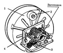 При несимметричном сечении заготовок, когда правильное ее закрепление в трех кулачковом патроне невозможно, применяют четырех кулачковый патрон с раздельным зажимом кулачков или планшайбу (рис.8).