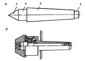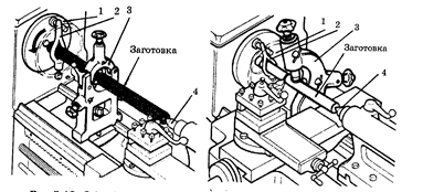 При обработке в центрах, для придания вращения заготовке, применяют поводковые патроны (рис.9). При наружной обработке длинномерных заготовок малого диаметра с целью предотвращения прогиба используют неподвижный (рис.10, а)