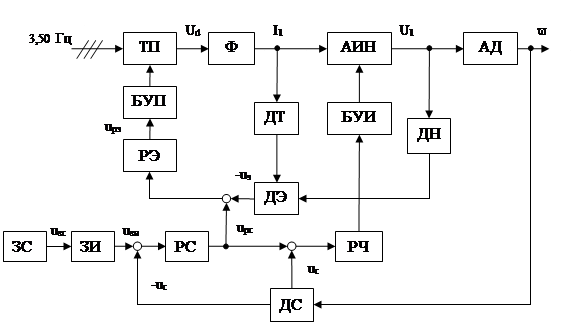 Структурная схема скалярной системы управления частотным электроприводом