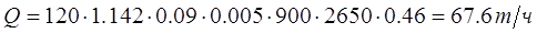 - производительность грохота Q= 67,6 т/час