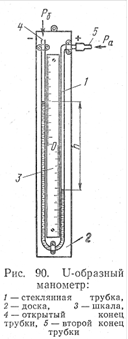 U-образный, манометр (рис.90) представляет собой изогнутую стеклянную трубку 1