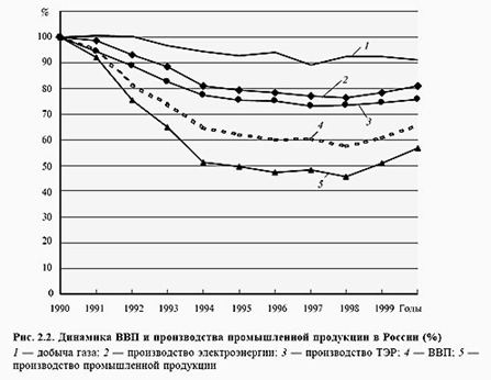 ввод в действие новых производственных мощностей во всех отраслях ТЭК сократился за девяностые годы от 2 до 6 раз;