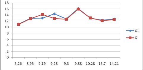 Как видно из графиков, признаки следа локтя правой руки имеют незначительные отклонения в значениях координат. Из 9 выбранных признаков совпали только четыре точки. След предплечья из семи точек имеет совпадения лишь по двум. В остальных следах точки расположены практически на одних и тех же значениях координат. Данный факт свидетельствует о том, что четыре участка кожного покрова из шести исследованных после анализа их количественных признаков имеют совпадения по большинству точек. В этом случае можно сделать вывод о тождестве в категорической форме. При анализе первого участка кожного покрова утверждать о тождестве в категорической форме нельзя, так как имеются расхождения в половине значений координат. Вероятный вывод объясняется особыми свойствами кожного покрова тела человека, а также возможными неточностями при обработке данных. В случае, если имеется значительное расхождение данных (как видно из следа предплечья), выводы эксперта не могут базироваться лишь на результатах математической обработки. В исследовании эксперт ограничивается методом визуального сопоставления, а результат математической обработки не приводит. Корреляционная зависимость