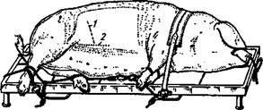 Если животное лежит, ему придают такое положение, чтобы задняя часть туловища была выше передней, или заставляют стоять и делают проводку. Применяют сакральную анестезию или препараты — ханегиф, хлоралгидрат, алкоголь в дозах, рекомендованных для каждого вида животного.