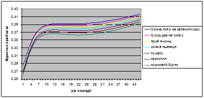 В результаті детальної статистичної обробки даних було виявлено дев’ять факторних груп показників з різною долею впливу на формування врожаю основних сільськогосподарських культур(рис 18) Це дозволило не тільки простежити залежності між врожаєм, ґрунтовими показниками та погодними умовами, а й кількісно визначити долю впливу кожного окремого показника (або їх сукупності) у формуванні величини врожаю. Стадійність змін основних ґрунтових властивостей чітко відображається на формуванні величини врожаю. Найбільші прибавки врожаю простежуються також в перші 15-20 років післядії.