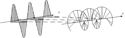 Отже, кінець вектора в кожній точці поля описує еліпс, який лежить у площині, перпендикулярній до осі ОХ.