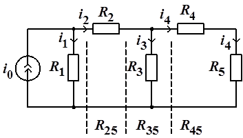 : ток в данной ветви пропорционален отношению сопротивления соседней ветви к сумме сопротивлений обеих ветвей