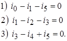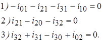 По первому закону Кирхгофа для узлов 1, 2, 3: