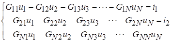 -го узла; все остальные слагаемые имеют знак "минус" и являются произведениями напряжения соответствующего узла на взаимную проводимость между данными и k