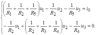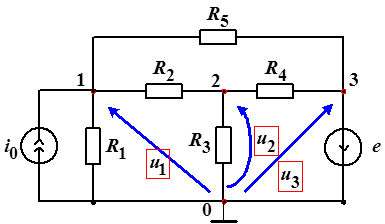 В качестве базисного выберем узел 0. Такой выбор обусловлен тем, что к узлу 0 подключено наибольшее количество элементов. Введем узловые напряжения Количество узловых напряжений на единицу меньше числа узлов цепи.