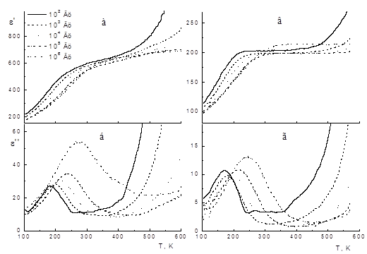 Построены М¢¢–М¢ диаграммы, определяющие соотношение мнимой (М¢¢) и действительной (М¢) составляющих комплексного электрического модуля (М*=М¢+iМ¢¢). Установлено, что они имеют различный вид в области высоких и низких температур (рис. 4).