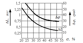 Рисунок. 12. Кривые запасов устойчивости по модулю DL и по фазе Dj от перерегулирования s.
