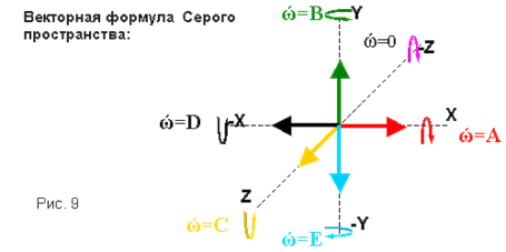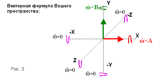 Такие необычные свойства пространства и его материи объясняются особенностями его векторной формулы, в которой четвертый вектор имеет отрицательный знак (направленность).