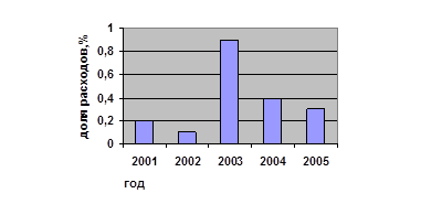Рисунок 1. Удельный вес расходов на обслуживание государственного долга республики Башкортостан в общем объеме расходов бюджета