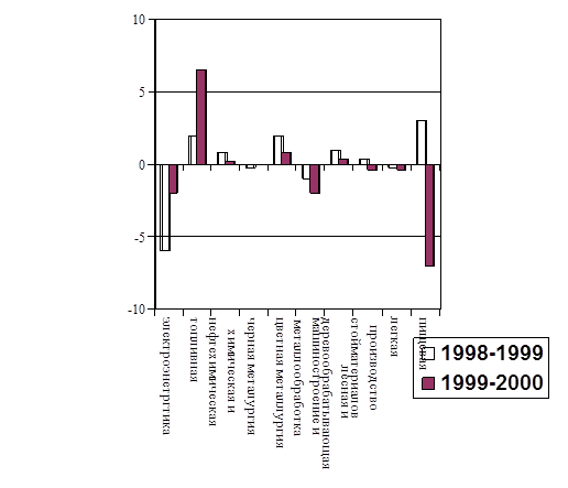 Изменение структуры инвестиций в основной капитал по отраслям промышленности, в %% за период