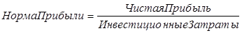 Норма прибыли показывает, какая часть инвестиционных затрат возмещается в виде прибыли. Она рассчитывается как отношение чистой прибыли к инвестиционным затратам.